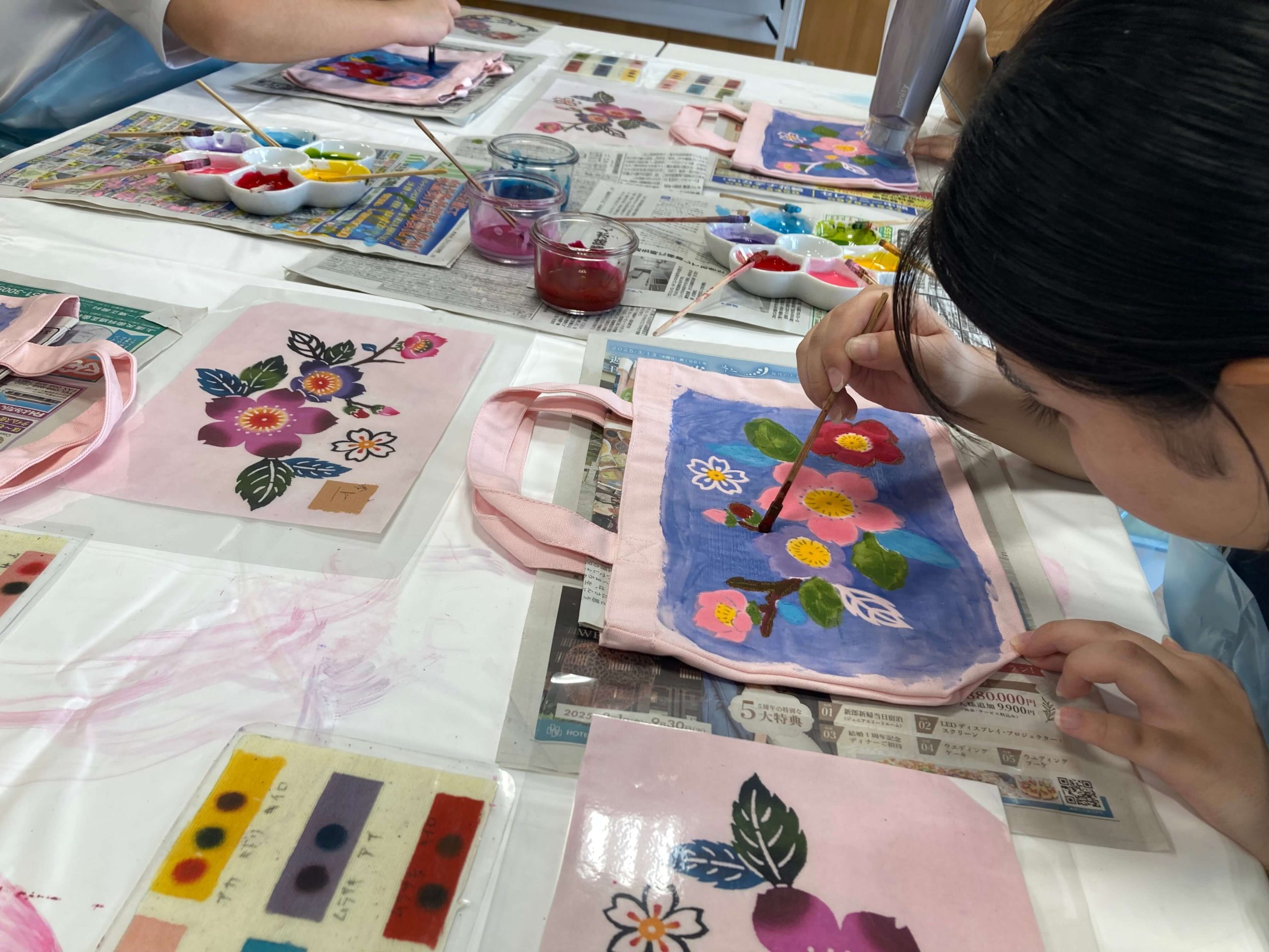 那覇市首里の「首里染織館suikara」で琉球びんがた染め体験を実施。職人からびんがたの歴史やびんがたへの想いを学びました。